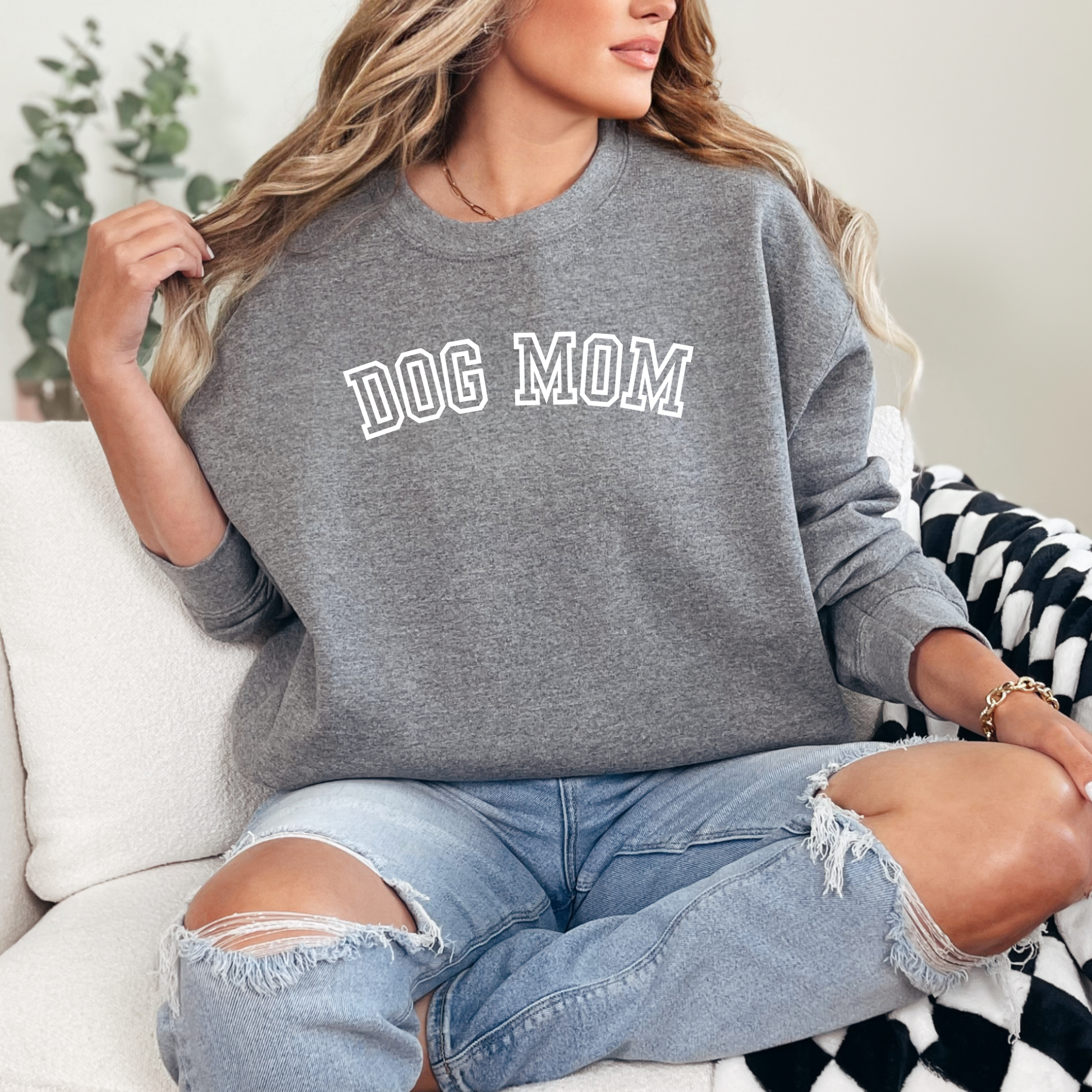 Varsity Dog Mom Embroidered Crewneck